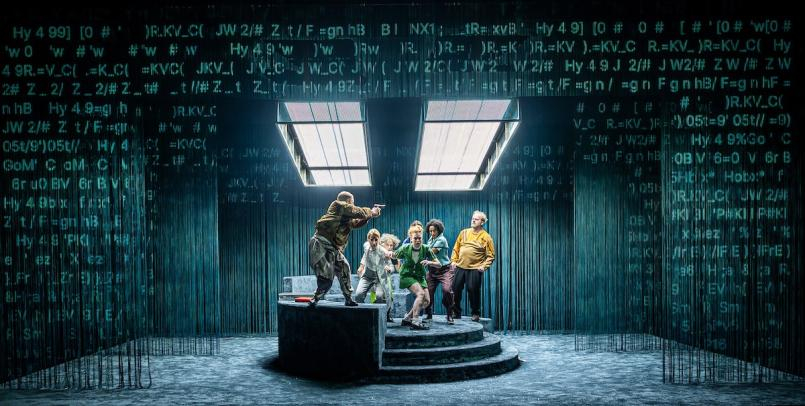 Regisseur Philipp Rosendahl hat allerdings alles in einen aufregenden, beeindruckenden virtuellen Raum versetzt. Auf Fransenvorhängen werden digital Kommentare, Bühnenbild-Angaben, KI-Prompts eingeblendet und der Raum mit Neonbalken digital eingegrenzt, während sich die Deckenlichter bedrohlich herabsenken: Der Raum schränkt sich ein. Vielleicht so, wie eine KI den kreativen Geist einschränkt – während man noch glaubt, er werde erweitert? Zwischen den Szenen erscheinen die Figuren immer wieder als Avatare oder personifizierte Algorithmen: künstliche, starrende, pseudo-lesende, kopfwackelnde Wesen, eine gleichgeschaltete Crowd, die den Autor zu verfolgen scheint.