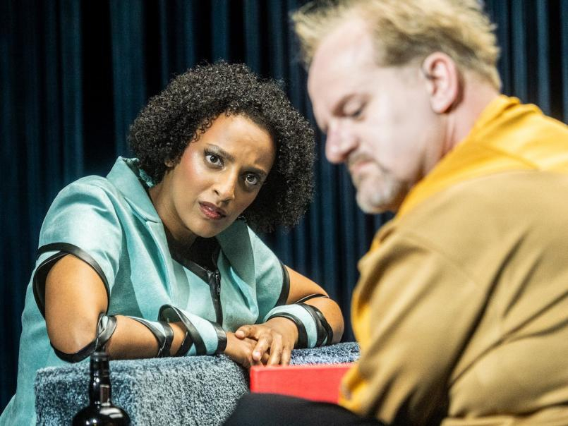 Interview mit einem Mansplainer: Fnot Taddese als Journalistin und Thiemo Schwarz als McNeal © Thomas Rabsch
