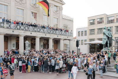 Weimar, 30. August 2019. "Wir sind ja hier im Theater", gibt der Politkünstler Philipp Ruch beim "Gedenkabend" des Zentrums für politische Schönheit, "Das Riff der Geschichte", zum Besten. Ein Versprecher? Eingeladen ist er zum Kunstfest Weimar. Um zu erklären, wie die Zukunft der Erinnerung an den Holocaust aussehen könnte. Aber zum einen war man nicht im Theater, sondern im Gebäude der ehemaligen Notenbank, zum anderen: wenn diese Diskussionsveranstaltung Theater war, dann war es ein herzlich schlecht inszeniertes Stück. Passiert ja öfter, also kein Drama. Ärgerlich nur, dass es um ein sehr ernstes, für das gesellschaftliche Miteinander wichtiges Thema geht: Um Erinnerungskultur in Zeiten, in denen man schon wieder unwidersprochen sagen kann, doch endlich Schluss zu machen mit der ewigen Vergangenheitsbewältigung, in denen Hetze gegen Menschen anderer Herkunft und übelster Rassismus in aller Öffentlichkeit und ganz besonders im weltweiten Netz Konjunktur haben.