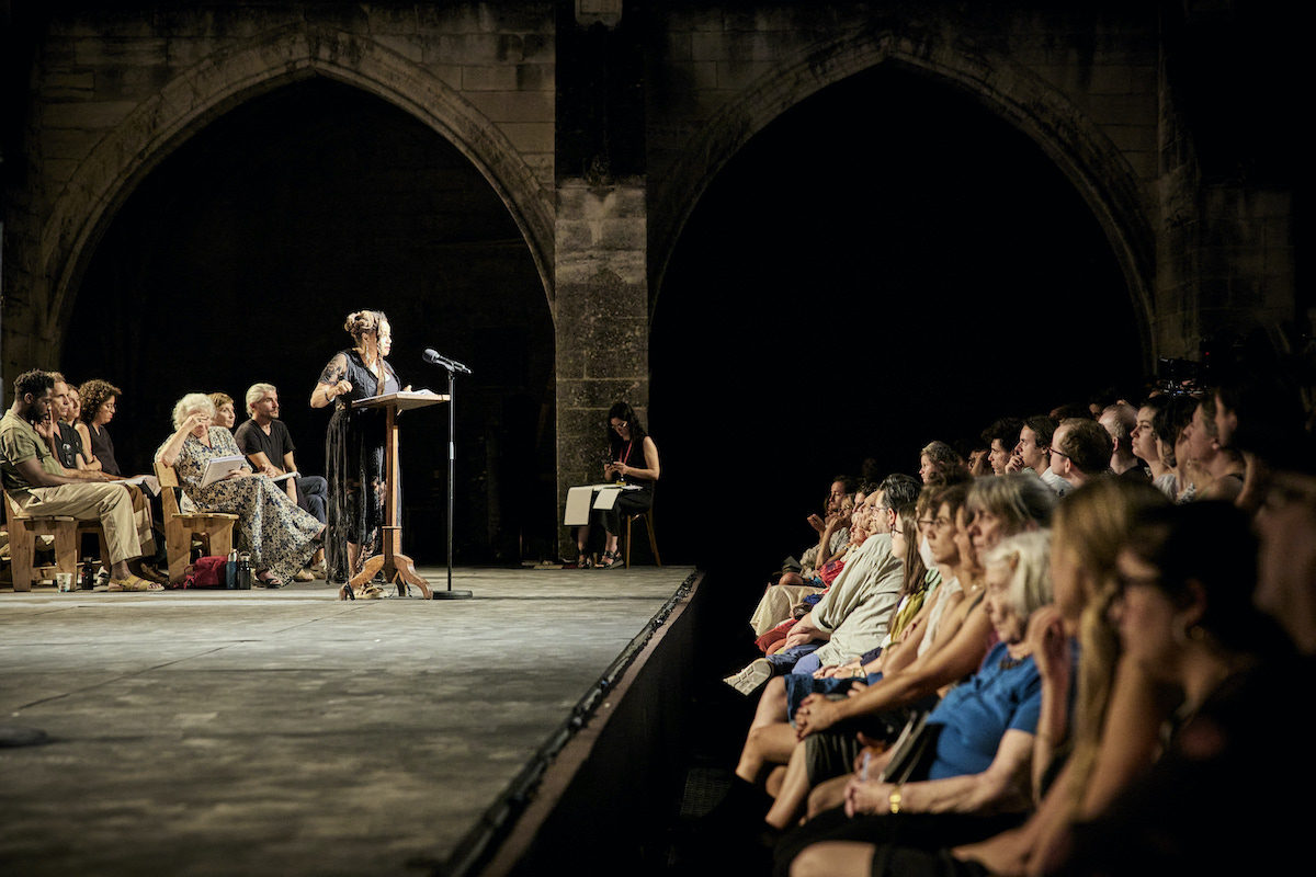 Wenn die Schauspielerin Marie-Christine Barrault die Stelle aus Petrarcas "Besteigung des Mont Ventoux" las, wo der Dichter sich oben auf dem Berggipfel von der Weitsicht abwendet und sich auf sein Innenleben besinnt, mag das zunächst etwas hoch gegriffen anmuten. Wie der unverrückbare Blickfang eines Gebirges bildeten aber unter dem Eindruck der geografischen Nähe die von Ariane Ascaride und Marie-Christine Barrault gelesenen Worte Gisèle Pelicots einen ruhenden Pol, um den die Vergewaltigungsdelikte sowie deren psychiatrische, juristische und feministische Auslegungen kreisten. Der Stilisierung zu einer Heldin des Geschlechterkampfs ist Gisèle Pelicot – die an dem Abend nicht mit im Saal saß – knapp entgangen.