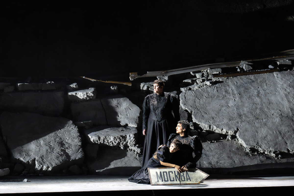 Die auffälligste Besonderheit der "Drei Schwestern" besteht darin, dass die Frauenrollen nach dem Wunsch des Komponisten, aber von ihm nicht dogmatisch gefordert, mit Countertenören, also mit Männern besetzt werden. In Salzburg sind das Dennis Orellana, Cameron Shahbazi und Aryeh Nussbaum Cohen als die Schwestern, die der Oper wie dem zugrunde liegenden Drama den Titel gaben, und Kangmin Justin Kim als deren Gegenspielerin Natascha, der Frau von Andrej, dem Bruder der drei Schwestern. Hinzu kommt, auf den ersten Blick noch ungewöhnlicher, der Bass Aleksander Teliga in der kleinen Rolle der Amme Anfisa.