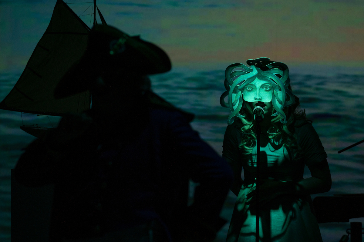 Jene, die sich's nicht haben richten können in den Rettungsbooten, sind jetzt auf dem Floß. Wellenprojektionen und Stroboskopeffekte illustrieren ihre ausweglose Lage. Während die Schiffbrüchigen sich allmählich dazu durchringen, Menschenfleisch zu essen, tun sich die "Besseren", die es sich haben richten können mit den Rettungsbooten, in Meterentfernung am Buffet gütlich und trinken Wein aus goldenen Pokalen. Man gönnt sich ja sonst nichts, und man ist sich zumindest in einer Sache eins: Der Kannibalismus, der dort draußen auf offener See ausgebrochen ist, gehört mit allen Mitteln vertuscht.