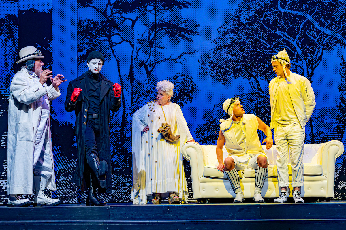 "Lumpazivagabundus"-Ensemble: C.C. Weinberger (Mystifax), Sebastian Wendelin (Lumpazivagabundus), Brigitte Kren (Fortuna), Johannes Deckenbach (Fludribus), Julius Dörner (Hilaris) © Lalo Jodlbauer