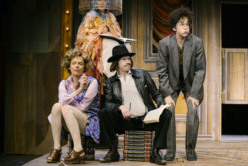 Die Wohnung des Professor Gollwitz, der sich anfangs denkbar unkommod über zwei Lexikon-Türme gelegt hat und Siesta hält, hat keine Tür, sondern zwei Schwingflügel, wie ein Saloon im Wilden Western. Da trudeln also die ungebetenen Gäste ein, in einer Frequenz, dass die Türflügel nur so flattern. Flugs ändern sich in dieser Stück-Variante die Gewichte. Aus Stichwortbringern werden eigenwillige Charaktere, und plötzlich ist nicht nur der Theaterdirektor der Spielmacher. Eine so bunte wie verquere Gesellschaft ist nach Kräften dabei, sich selbst ad absurdum zu führen. Wo die Regisseurin hinzielt: Alle machen ihr eigenes Theater und sind darin unschlagbar als Schmierenkomödianten des Bürgertums.