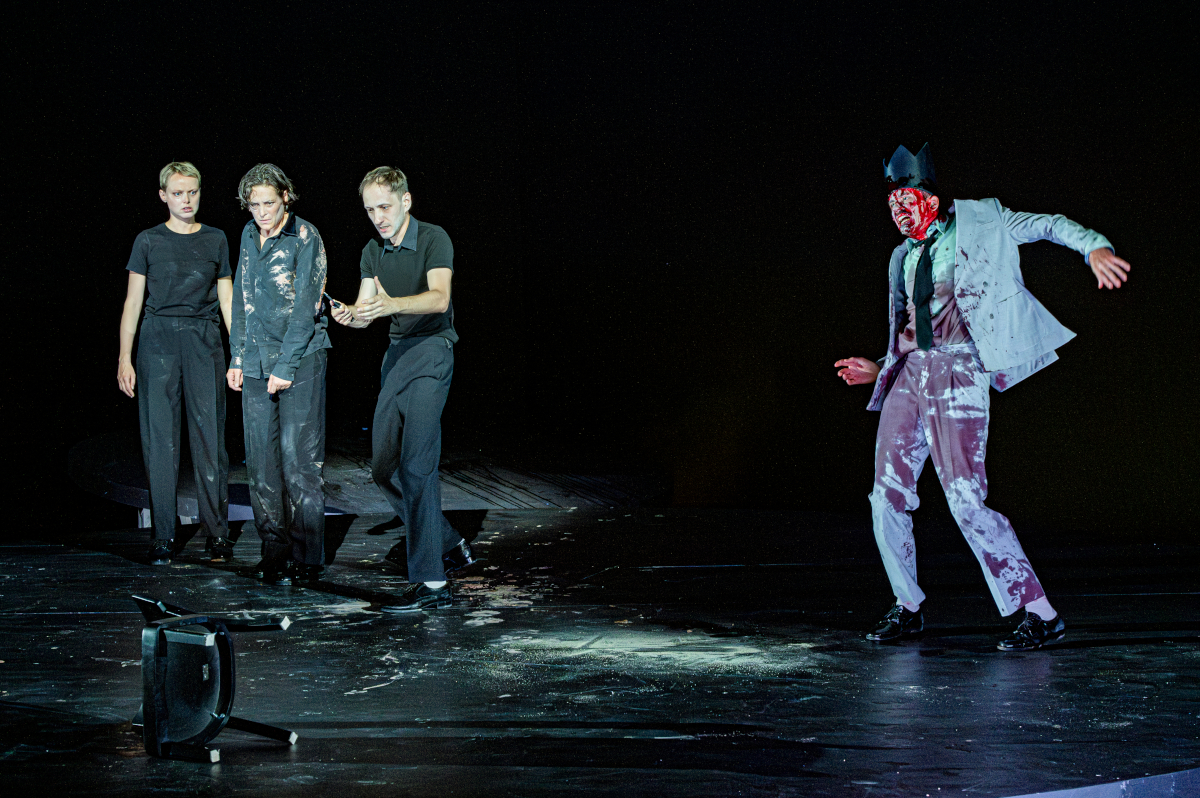 Blutige Enthüllungen: Marie-Luise Stockinger, Katharina Lorenz, Alexander Angeletta, Tim Werths © Lalo Jodlbauer/ Burgtheater