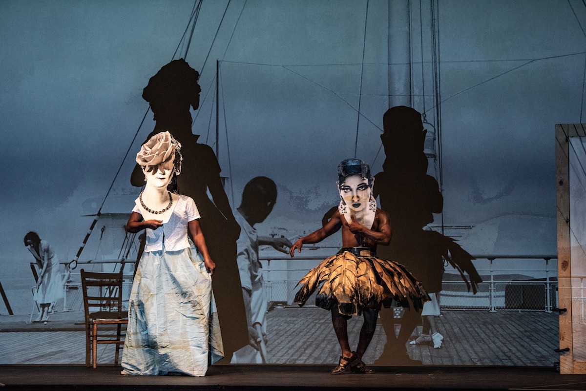 Die südafrikanischen Darstellerinnen und Darsteller halten große, plane Pappköpfe vor die Gesichter, wenn sie in diese Figuren schlüpfen. Aber sie ziehen diese auch gleich wieder weg, denn es sind ja auch Geschichten der People of Colour, die sie erzählen. Also eigene, authentische Geschichten. Dafür steht beispielsweise der ungemein starke Chor der sieben Frauen. Sie singen in ihren südafrikanischen Muttersprachen isiSwati, isiZulu, isiXhosa, Setswana, Xitsonga und Sepedi. Sie klagen, erinnern, vermitteln. "Kein fremder Himmel schützte mich!" Charon, der Schiffmann zur Unterwelt, kommentiert höhnisch: Das alles werde den noch nicht Geborenen schwer zu vermitteln sein. Aber die Musik der Frauen, geprägt von starken Soli und markig rhythmisierten Refrains, lässt Widerstand und Überlebensstärke greifen. Aufs Wort Négritude kontert eine: "Ich bin keine Gefangene der Geschichte!" Und es folgt der Vorwurf an die Alte Welt: "Von euren Maschinen, Flugzeugen und Gesetzen geht nicht die geringste Empfindung aus."