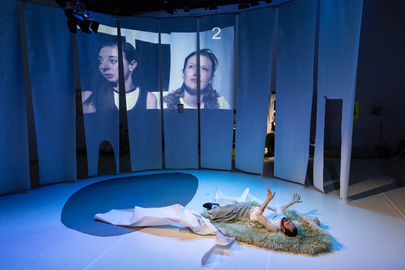 Mit zur großen Geste erhobenen Hand liest Schauspielerin Aline-Sarah Kunisch einen im Usedomer Schreib-Retreat verfassten Text. Ironisch formt sich ihre Hand zum mahnenden Zeigefinger, wenn der Text in persönlichen Erfahrungen nach Wahrhaftigkeit sucht. Die Ostsee-Insel und das Bühnenbild von Albert Frühstück aus wohlig weißen, in regelmäßigen Abständen gehängten Papierbahnen versprechen Klarheit. Aus der Distanz ihres Ferienappartements blickt die Verfasserin belustigt auf ICE-Beamte, die auf Eis ausrutschen: "Wenn es nicht so schrecklich wäre, würde man lachen." Doch ihre Abgeschiedenheit kippt bald in einsame Kauzigkeit und Erschöpfung. Also zurück unter Leute! Wenn das nur so einfach wäre. Bevor irgendwer irgendwem begegnet, ist Kunisch gezwungen, einen Berg an Absagen à la "Sorry, aber ich packs heute nicht" vorzulesen.