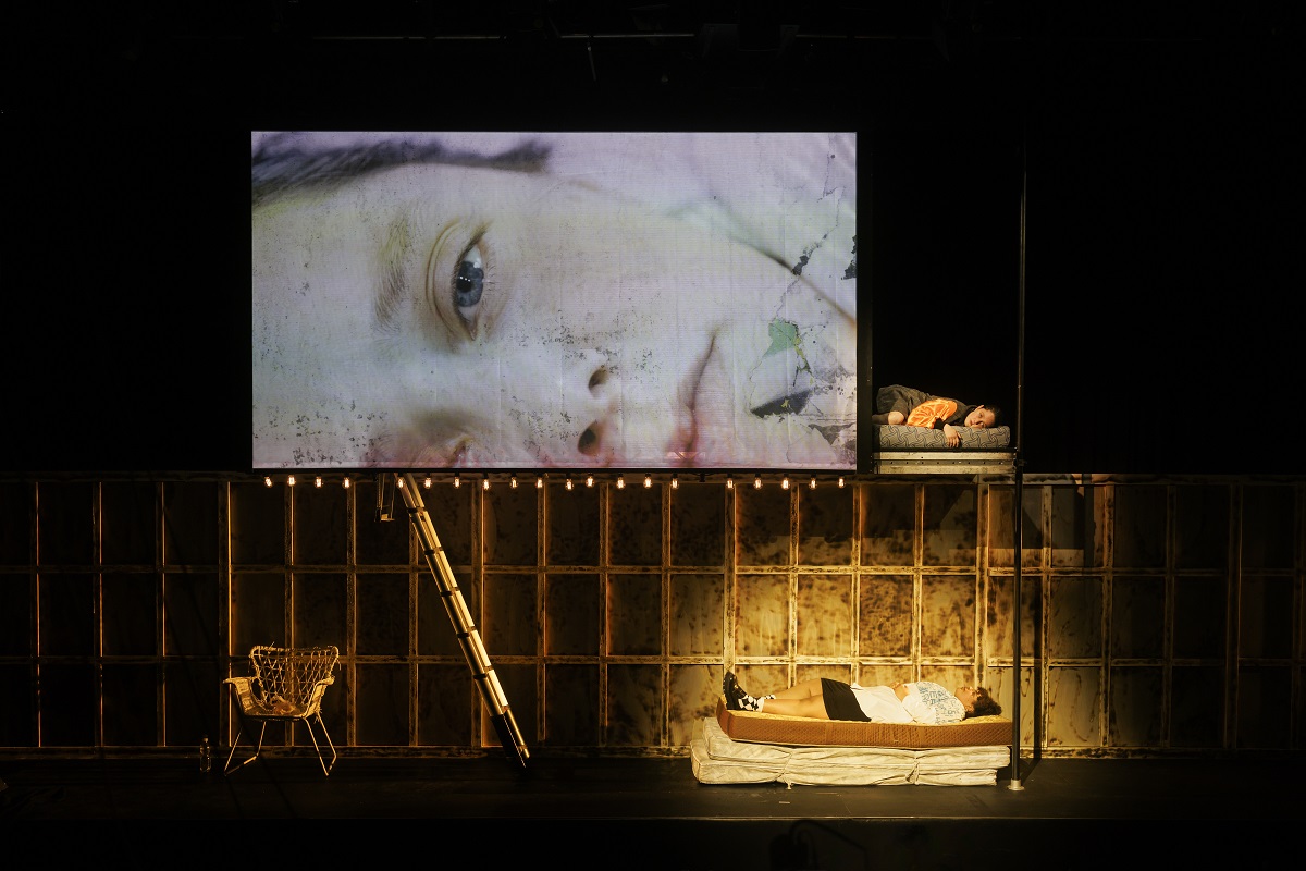 Durch eine Ausziehleiter erreicht man darüber eine zweite Ebene, die von einer durchscheinenden Videoleinwand abgeschirmt wird. Darauf werden Straßenszenen projiziert, von naturwissenschaftlichen Mikroskopaufnahmen inspirierte Muster, Blumenwiesen. Abgesehen davon findet der folgenschwere Ortswechsel von der Stadt hinaus aufs Land nur in den Gesprächen zwischen Anna und Eireni statt, die – nicht immer, aber dennoch zu oft frontal ins Publikum sprechend – im Dialog ihre gemeinsame Geschichte rekapitulieren. Am Sommercamp treffen sie schließlich auf Jana (Sophia Löffler), eine gut gelaunte, propere junge Nazisse, die den beiden bei einem immer bedrohlicher werdenden Trinkspiel auf den ideologischen Zahn fühlt.