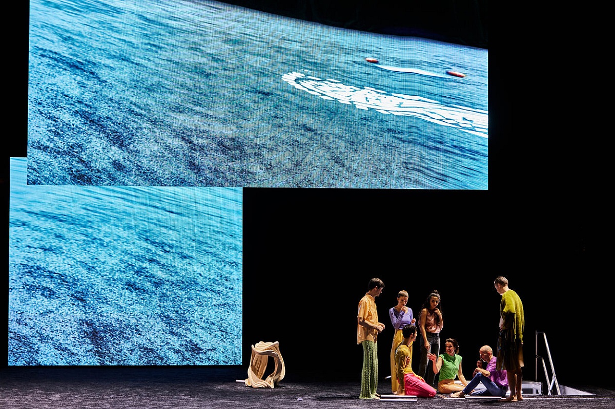 Eine Nebelmaschine zieht eine dünne Decke über den gesamten Zuschauerraum. Darauf entfalten sich mittels Laserprojektion gleißende, über den hellen Himmel jagende Wolken. Der Himmel über dem Kopf ist dabei zum Greifen nah, hinten auf der Bühne geht es nun ins Offene, helles blau über blau, Himmel und Ozean, die letzten noch lebenden Humanoiden sieht man von hinten, wie sie hinausschauen ins Blaue: Is this the dawning of the age of Aquarius? Und eine sagt: "Ich glaube an die Zukunft. Ich glaube daran, dass man sich eine Zukunft vorstellen soll und in ihr leben. Ich glaube daran, dass ich einer großen Liebe begegnen werde."