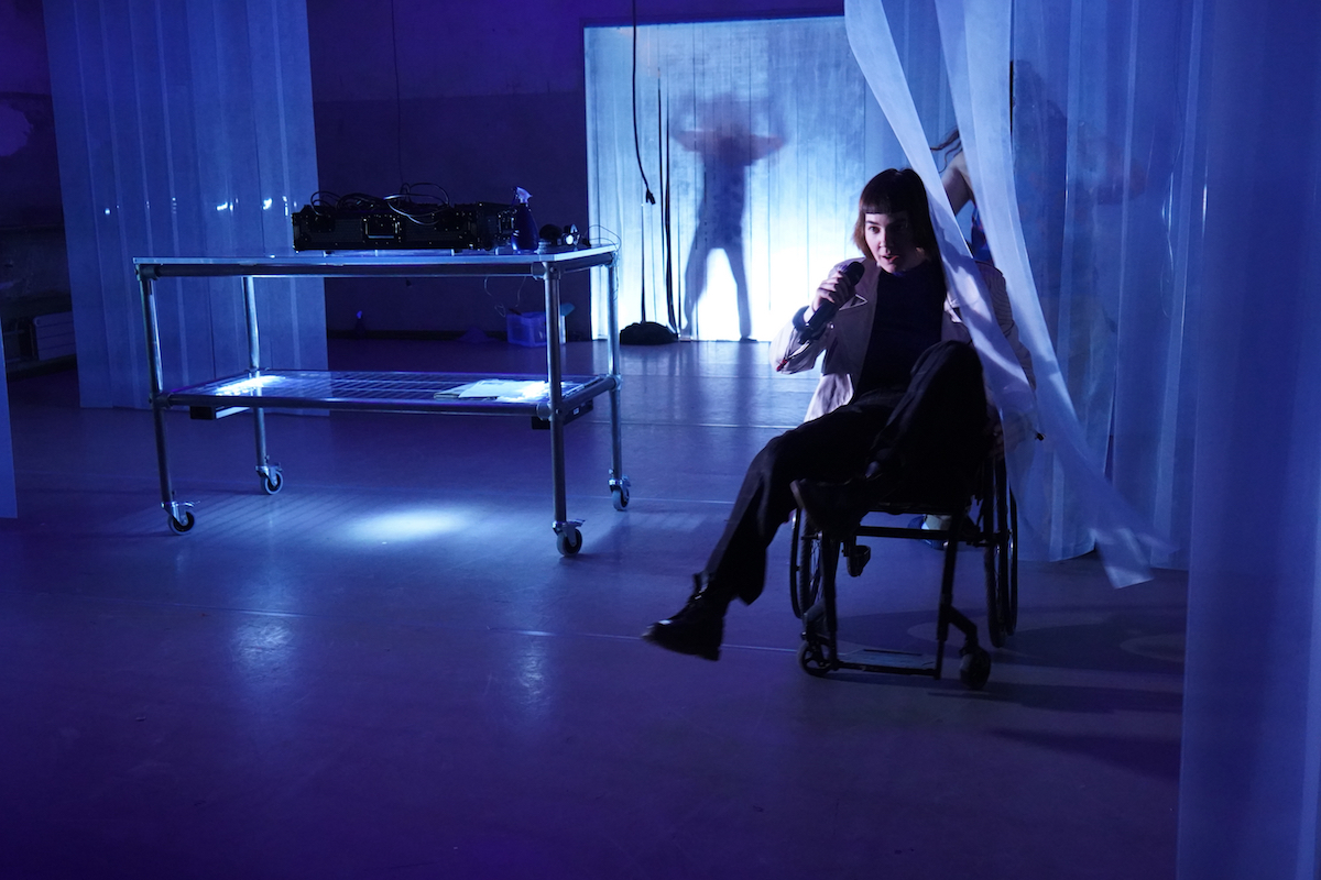 9. März 2024. Streifenvorhänge in kaltem Licht sind das einzige, was man anfangs auf der dunklen Bühne sieht. Vier Personen tasten sich an die Vorhänge heran, ziehen sie auseinander, schauen in den Zuschauerraum und verschwinden wieder. Der eine ist Yuri, der mit seinen Eltern ins sonnige Florida umziehen sollte, sich bei der Abreise aber im Solarium eingeschlossen hat, das die Eltern betreiben – das ist das Viereck zwischen den Vorhängen, die sich drehen und verschieben lassen und so die verschiedensten Räume bilden. Ein zweiter ist Paco, Yuris Freund, der an einer heimtückischen Bluterkrankung leidet und immer wieder ins Spital muss. Als plötzlich die beiden Schwestern Inna und Ziska auftauchen, verändert sich die Welt der beiden Freunde.