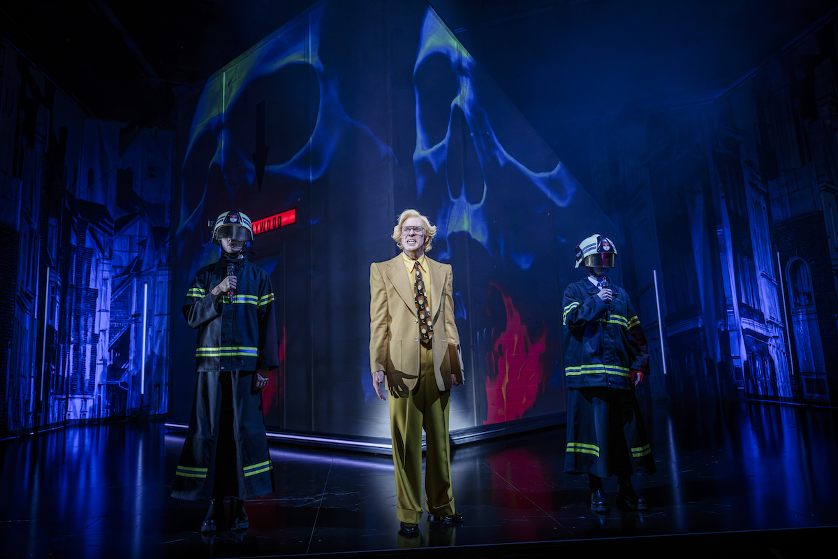 16. Oktober 2025. Alles wie in Hollywood: Grell ausstaffiert inszeniert Stefan Pucher Max Frischs "Biedermann und die Brandstifter" und schenkt denen, die bei den Biedermanns zum Zündeln anklopfen, einen filmreifen coolen Charme - der so einige Fragen offen lässt.