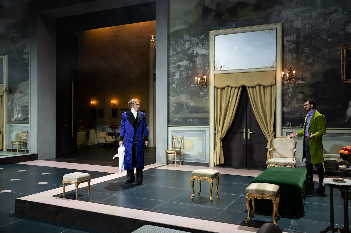 Vor Niedergang und Verarmung, die Fresken bröckeln längst: Don Fabrizio (Markus Scheumann) und sein Neffe (Mouataz Alshaltouh) in "Il Gattopardo" am Schauspielhaus Zürich © Krafft Angerer