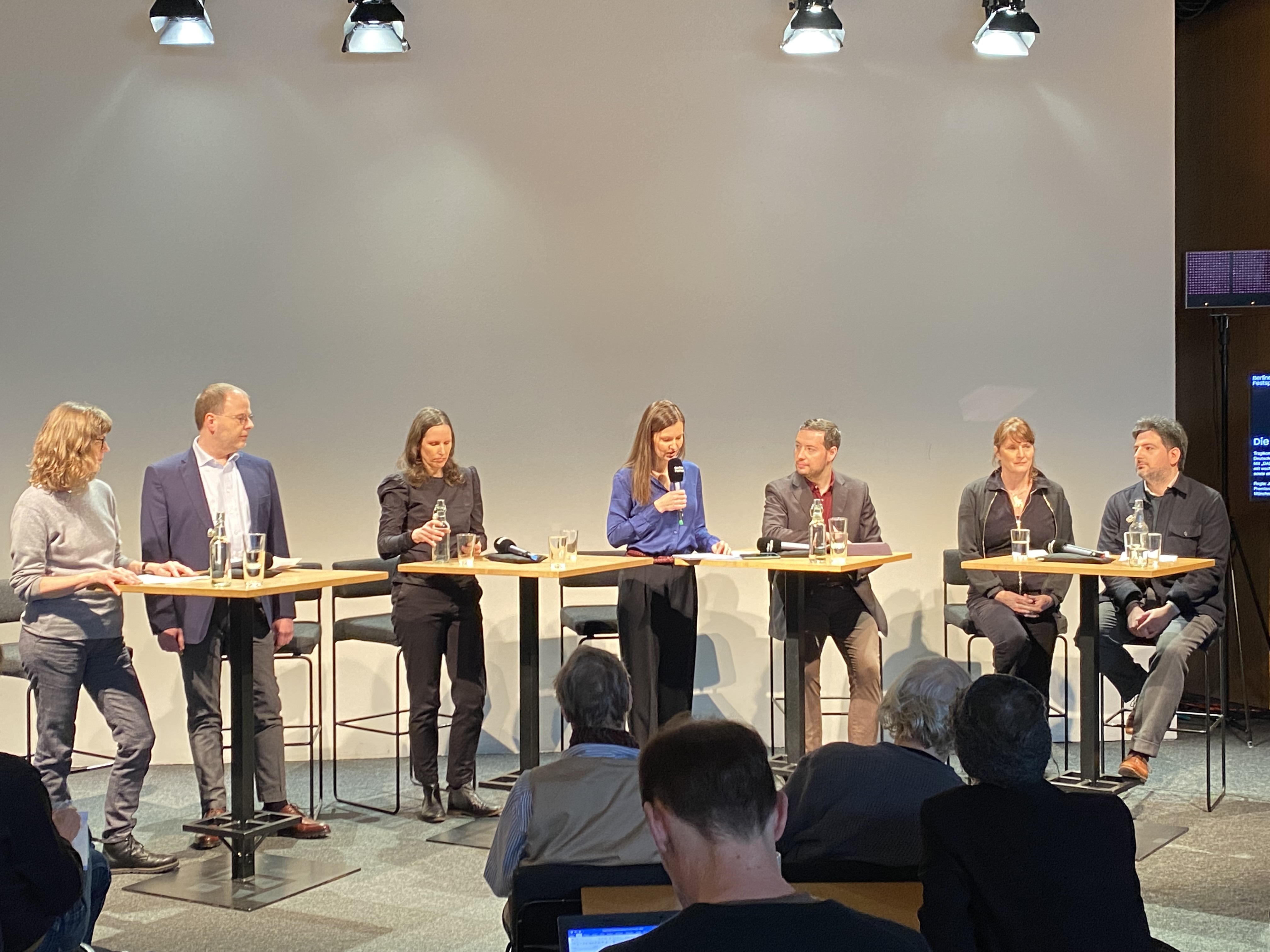Pressekonferenz mit der Jury und der Theatertreffen-Leiterin Nora Hertlein-Hull in der Mitte © sle