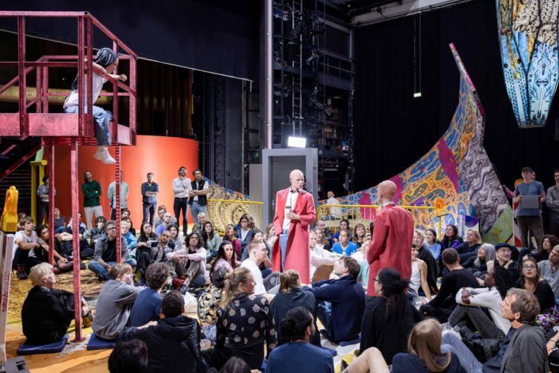 Künstlerinnen-Avatare mit großer Anhängerschaft: Susanne Kennedys "The Work" 2024 in der Berliner Volksbühne © Moritz Haase